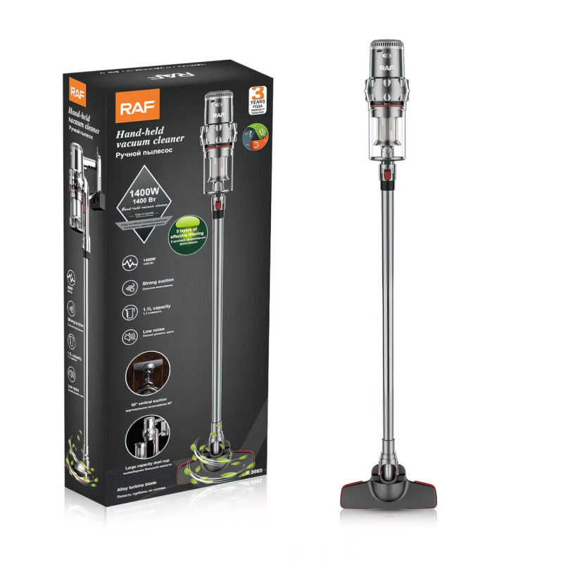 Ручной пылесос RAF R.8665 обеспечит быструю и качественную уборку за счет своей уникальной системы очистки и эргономичного дизайна. Устройство имеет мощность всасывания в 200 Вт и оснащено пятиуровневой системой фильтрации, которая справится даже с самыми мелкими частичками пыли размером 0.3-10 мкм. Также прибор оснащен съемной телескопической ручкой, сняв которую длина составит всего 54 см, что позволит добраться в самые трудные уголки квартиры или дома. Главными отличиями от предыдущей модели является увеличенный объем пылесборника, питание от сети и увеличенная до 1400 Вт мощность.