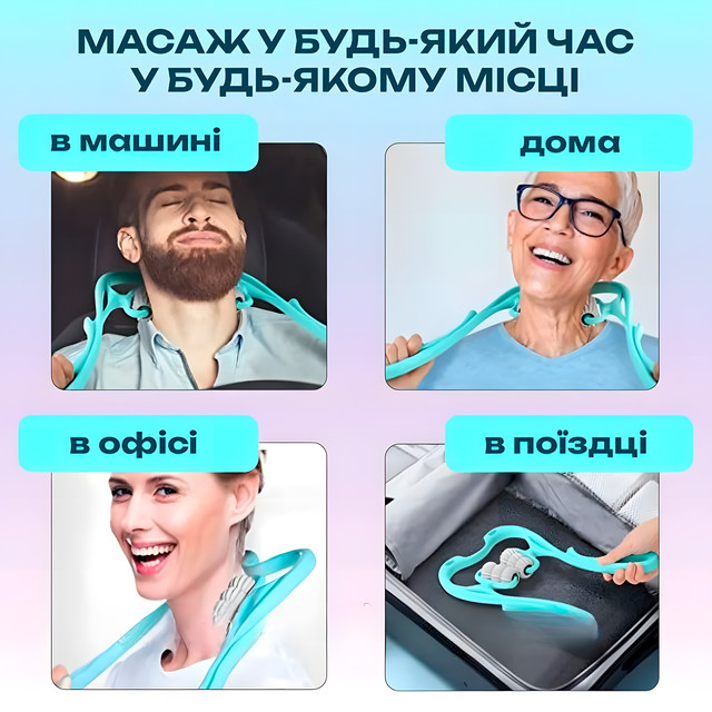 - Универсальность: Подходит для массажа шеи, спины, плеч, ног и других частей тела, что делает его идеальным выбором для общего расслабления и восстановления;