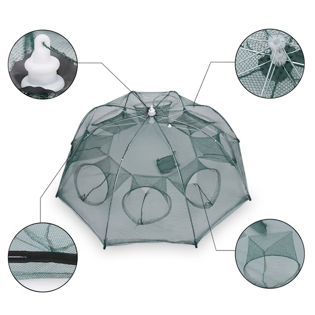 Современная верша изготовлена из прочной многожильной нити, обеспечивая высокую прочность на разрыв, а также удобство переноски и хранения. Корпус выполнен из пластика, что делает его легким и удобным в использовании. Автоматическая рыболовная сеть оснащена 4-8 отверстиями и сделана из нейлоновой складной сетки, что обеспечивает ее прочность и удобство в транспортировке. Большое количество входов для рыбы значительно повышает эффективность ловли. Опустите вершу в воду и через несколько часов вы сможете с легкостью достать пойманную рыбу из ловушки.