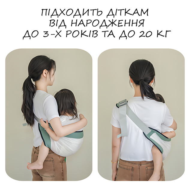 - Универсальность использования: Подходит для детей с рождения до 3 лет, позволяя использовать слинг на разных этапах роста ребёнка;
