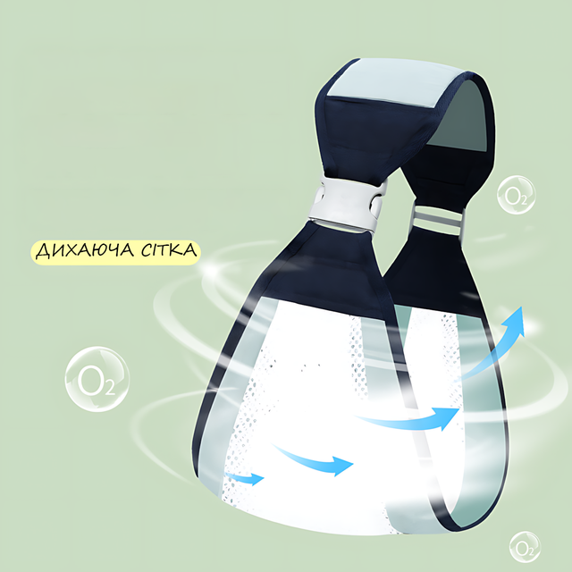 - Дышащий материал: Слинг изготовлен из сетчатой ткани, что обеспечивает хорошую вентиляцию и комфорт в любое время года, включая жаркие летние дни;