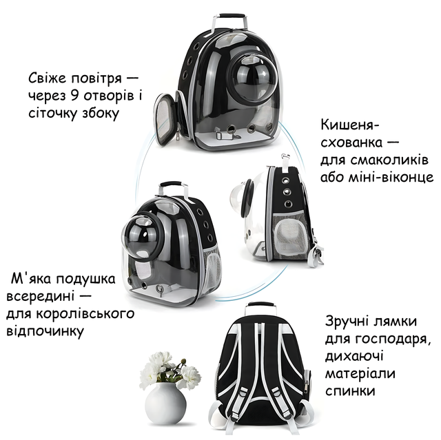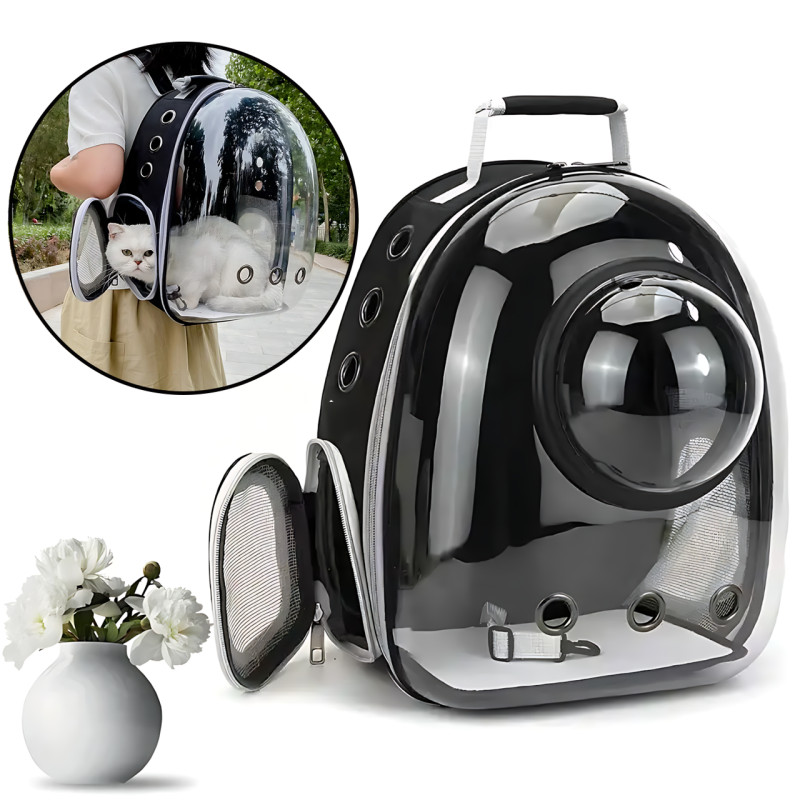 Рюкзак-переноска для животных MA686, прозрачный дышащий SpaceCapsule, с вентиляцией и боковым карманом, для кошек и собак, ПВХ + ткань Оксфорд, черный
