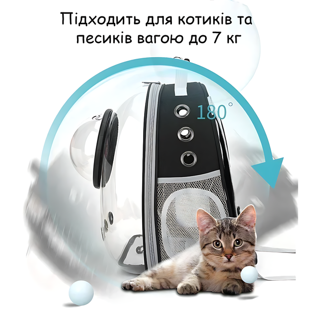 Рюкзак-переноска для животных MA686, прозрачный дышащий SpaceCapsule, с вентиляцией и боковым карманом, ПВХ + оксфорд