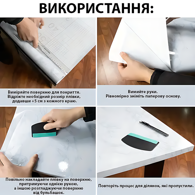 - Прекрасная адгезия: Благодаря высококачественной адгезии, пленка надёжно фиксируется на различных поверхностях, таких как дерево, стекло, металл, пластик и керамика, что предотвращает её отклеивание или образование пузырей;