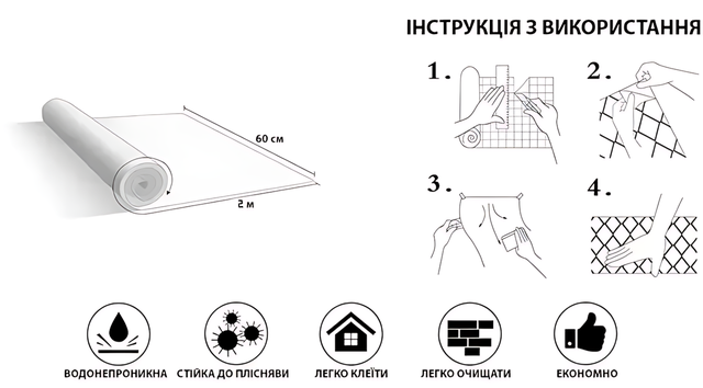 - Самоклеящаяся кухонная ПВХ-пленка 2 м х 0.60 м;