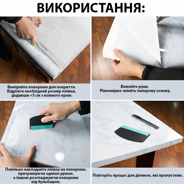 - Универсальное применение: Пленка подходит для использования на любых гладких, чистых и сухих поверхностях, таких как шкафы, столешницы, полки, столы, двери и другие. Она идеально подходит для обновления мебели и интерьера;