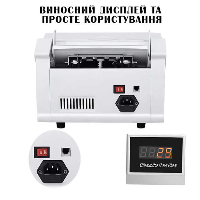 Светодиодный дисплей отображает количество пересчитанных банкнот, а технологии ультрафиолетовой и магнитной детекции гарантируют защиту от подделок.
