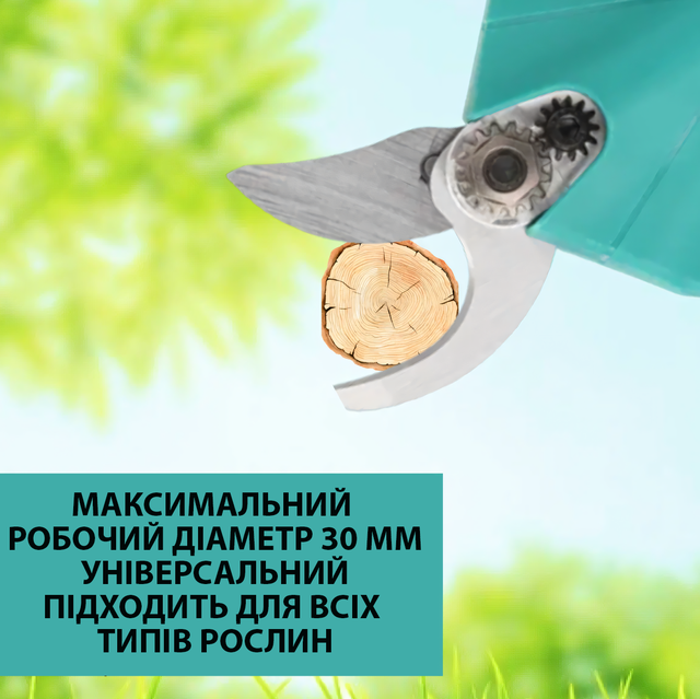 - Большой диаметр резки: Максимальный диаметр веток, которые можно обрезать, составляет 30 мм.