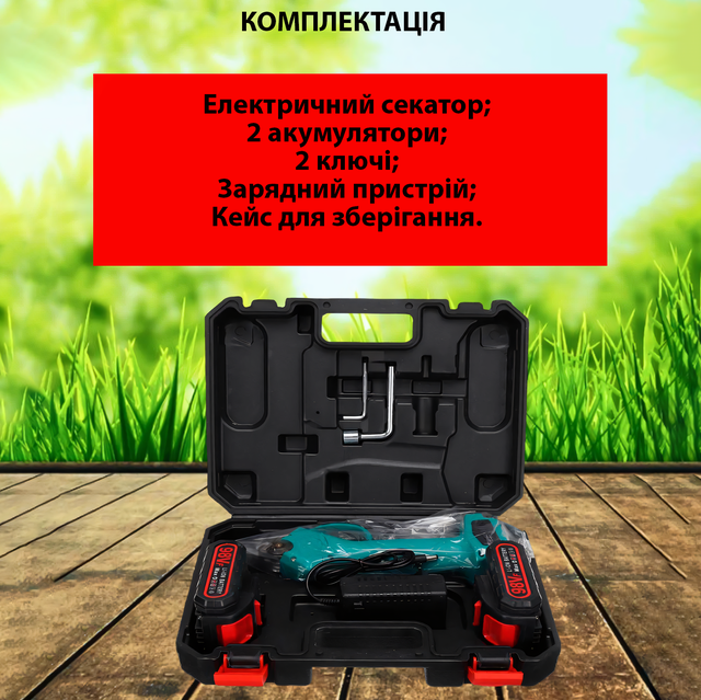 Аккумуляторный секатор – это высококачественный электрический инструмент, предназначенный для садовых и огородных работ. Легкий и портативный, этот электро секатор прост в использовании и значительно повышает производительность. Он идеально подходит для обрезки и подравнивания ветвей в садах, огородах, виноградниках и других растительных зонах. В сравнении с традиционными ручными секаторами, аккумуляторный секатор работает в 8-10 раз эффективнее и обеспечивает более высокое качество обрезки.