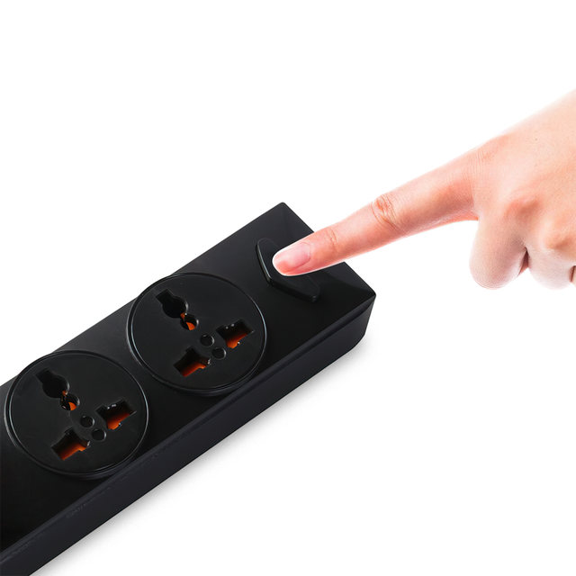 - Фильтр-удлинитель имеет два универсальных разъема для различных типов вилок и оборудован защитой от перенапряжения и заземлением, что обеспечивает безопасность использования.