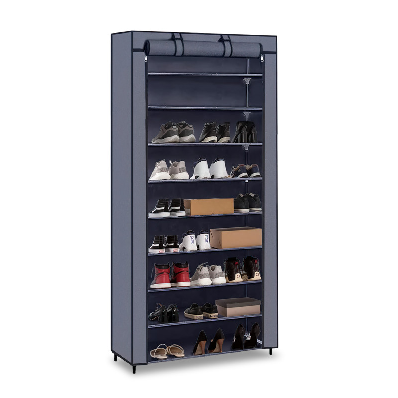 Оптимальное хранение обуви становится легким и компактным с тканевым шкафом для обуви 1Q. Высотой 160 см, этот органайзер на 9 ярусов предназначен для размещения до 27 пар обуви, обеспечивая эффективное использование пространства в вашем доме.