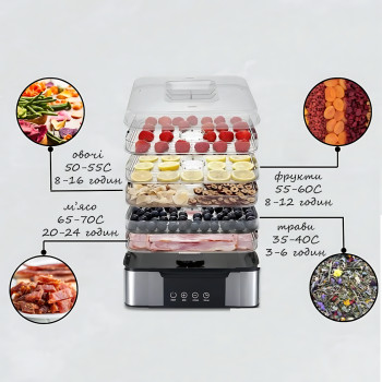 Сушилка дегидратор для фруктов, овощей, грибов и трав Silver Love RB-912, 1000Вт, 5 поддонов, регули..