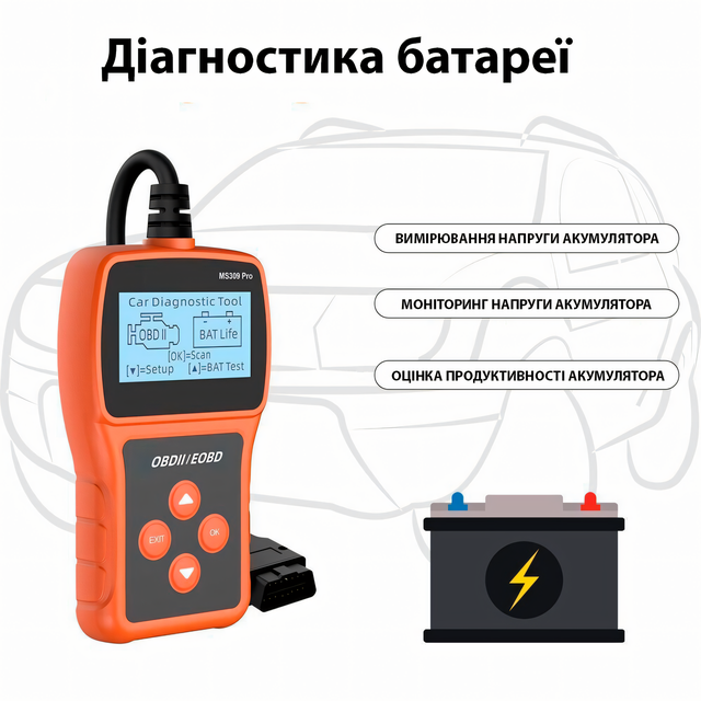 Сканер диагност MS309PRO OBD2, тестер неисправностей двигателя, определение DTC, заряда батареи, авто с 2006 г