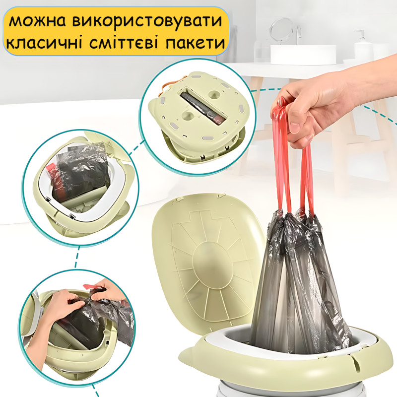 - 🧺 Практичный — внизу есть специальное крепление для мешков, чтобы всё оставалось чисто и аккуратно.