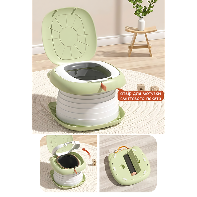 Складной детский дорожный горшок MA673, до 50 кг, пластиковый, с чехлом и защитой от запаха, зеленый