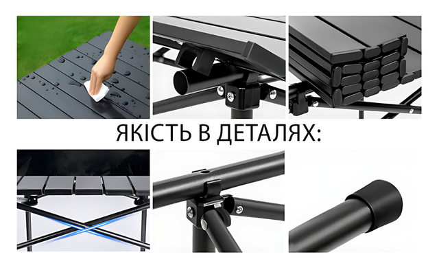 Он не капризный: не боится ни улицы, ни дачи, ни случайных капель кетчупа. Металлический каркас — как костяк настоящего бойца, а прочная столешница держится уверенно, не дрожит от первого ветерка.