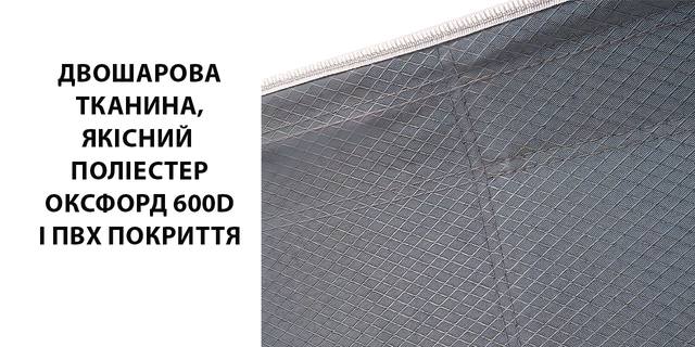 ✅ Ткань 600×300D полиэстер с ПВХ-покрытием – плотный, влагостойкий и износостойкий материал, который не рвется и легко чистится.