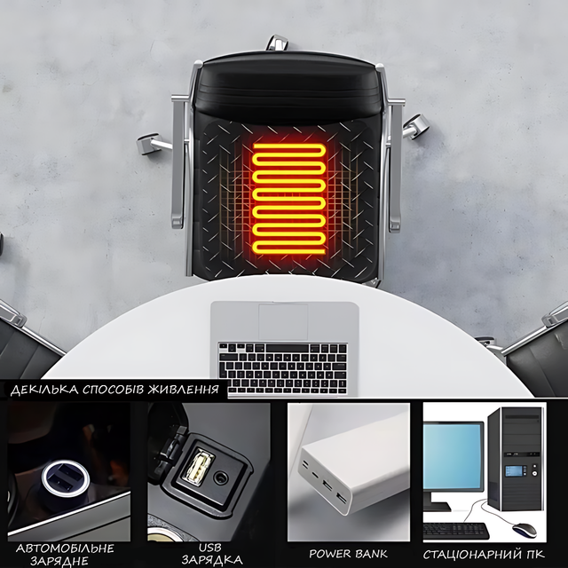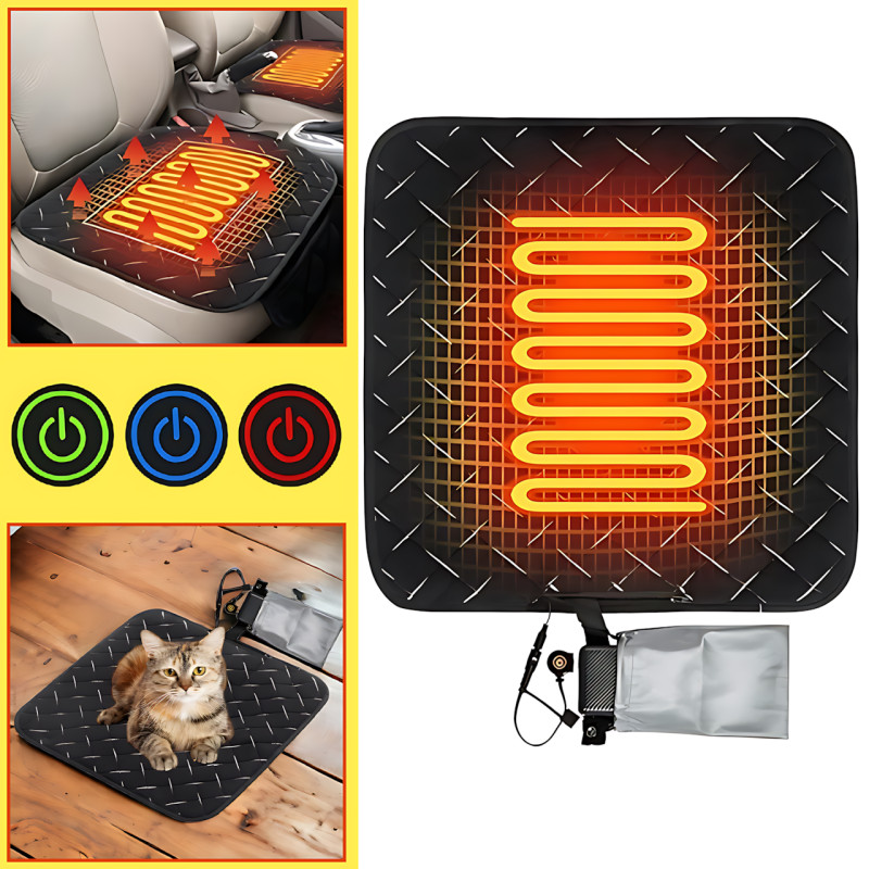 Согревающий коврик в авто, на стул, под ноги, для животных, работает от usb, три режима 38°- 65°C, 45 х 45 cm