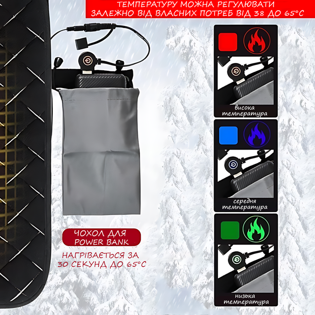 Коврик имеет 3 уровня регулировки температуры, обеспечивая комфорт и экономию энергии. Работает от любого USB-порта, с рекомендуемой силой тока 2 А. Для более эффективной работы рекомендуется использовать Power Bank или зарядное устройство емкостью не менее 10 000 mAh. С тремя температурными режимами (красный – 55-65°C, синий – 45-55°C, зеленый – 38-45°C) можно выбрать наиболее подходящую температуру в зависимости от условий.