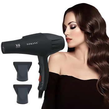 Фен SOKANY X6, 2200 Вт, 2 скорости, с насадкой-концентратором в комплекте, работа от сети + ионизаци..