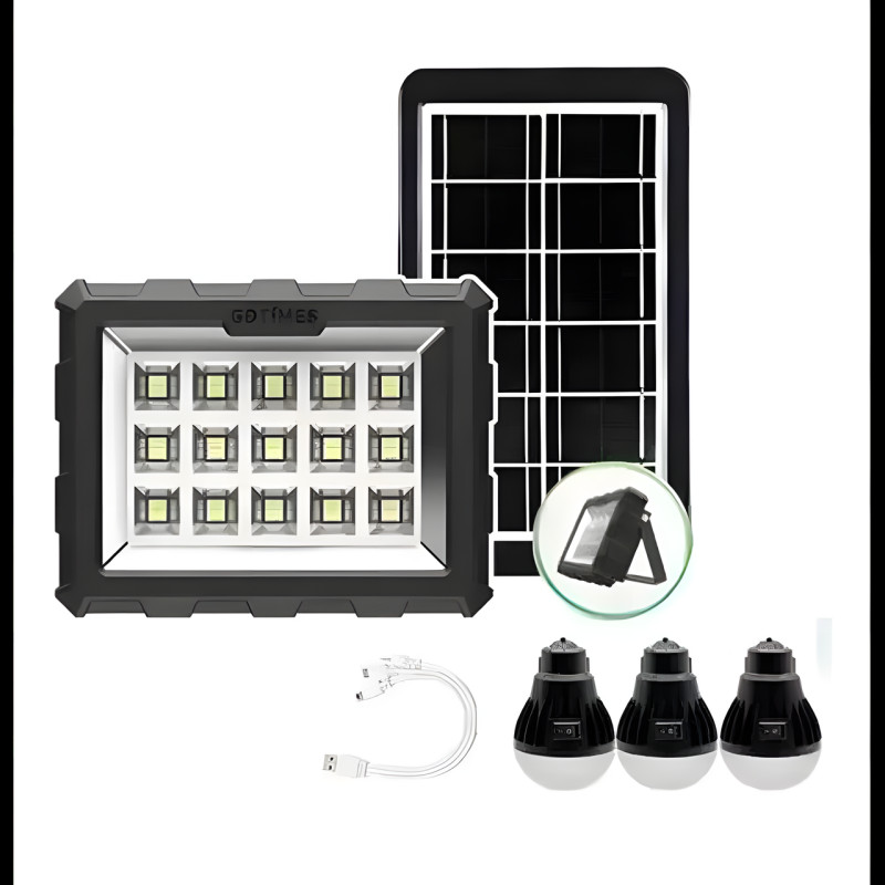 Солнечная зарядная станция GDTimes GD 106 с фонарем и 3 лампочками
