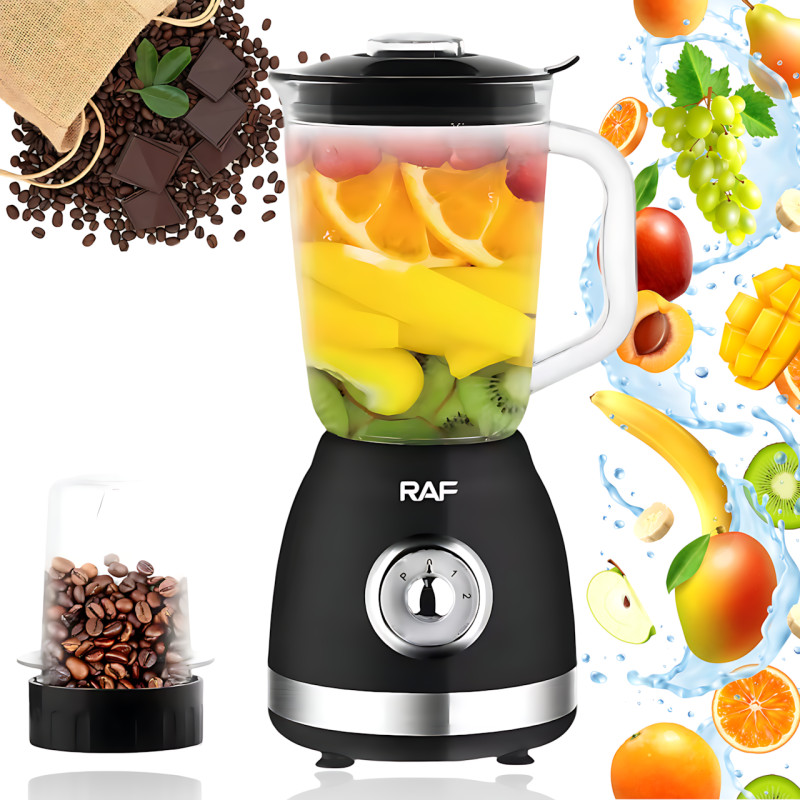 Стационарный блендер 1000W, блендер RAF 2826 со стеклянной чашей и кофемолкой, лезвия нержавеющая сталь