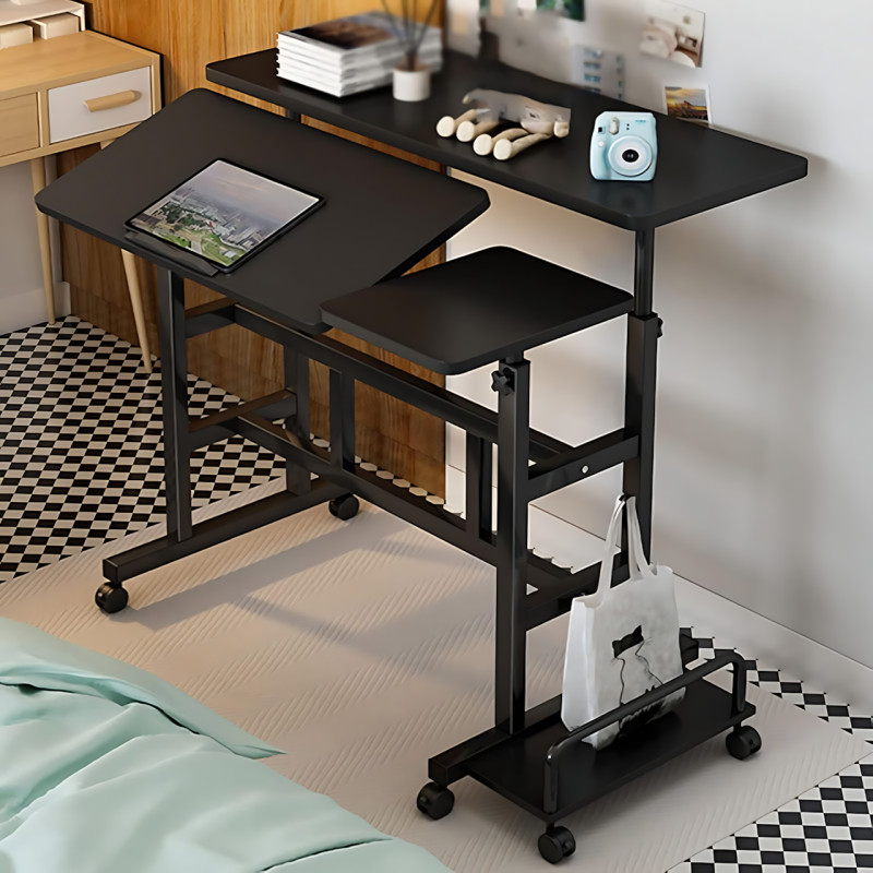 Стол для дома компьютерный (101), передвижной подъемный столик-трансформер на колесах, с полкой для ПК, Черный
