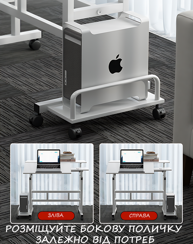 Этот мобильный стол оснащен колесиками, поэтому его можно легко перемещать в разные места дома или офиса, а подъемный механизм позволяет регулировать высоту, поэтому вы можете настроить свой стол в соответствии со своими потребностями и предпочтениями. Независимо от того, используете ли вы его как тумбочку или компьютерный стол, этот универсальный предмет мебели украсит любое пространство.