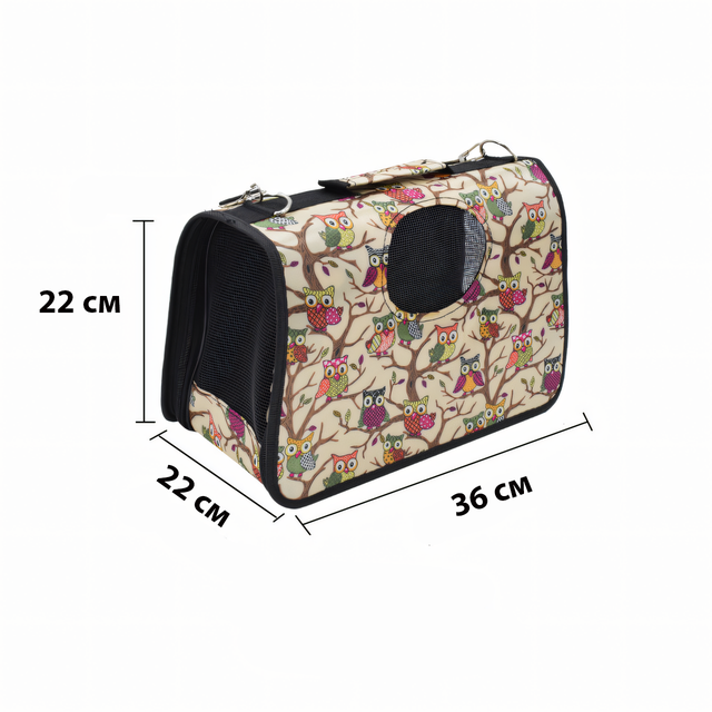 Сумка-переноска For Friends для собак и кошек до 5 кг, 36×22 см, на молнии, с вентиляцией, узор совы