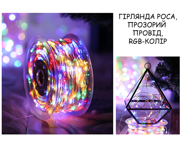 Прозрачный провод делает гирлянду визуально лёгкой — видно свет, а не кабель. Разноцветные светодиоды создают динамичную, живую атмосферу: Новый год/вечеринка, свадьба/фотозона или просто «хочу красиво».