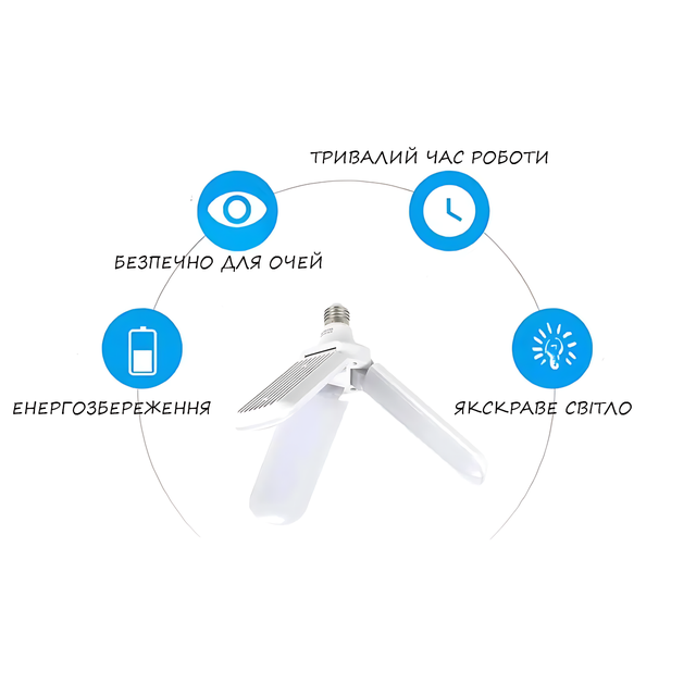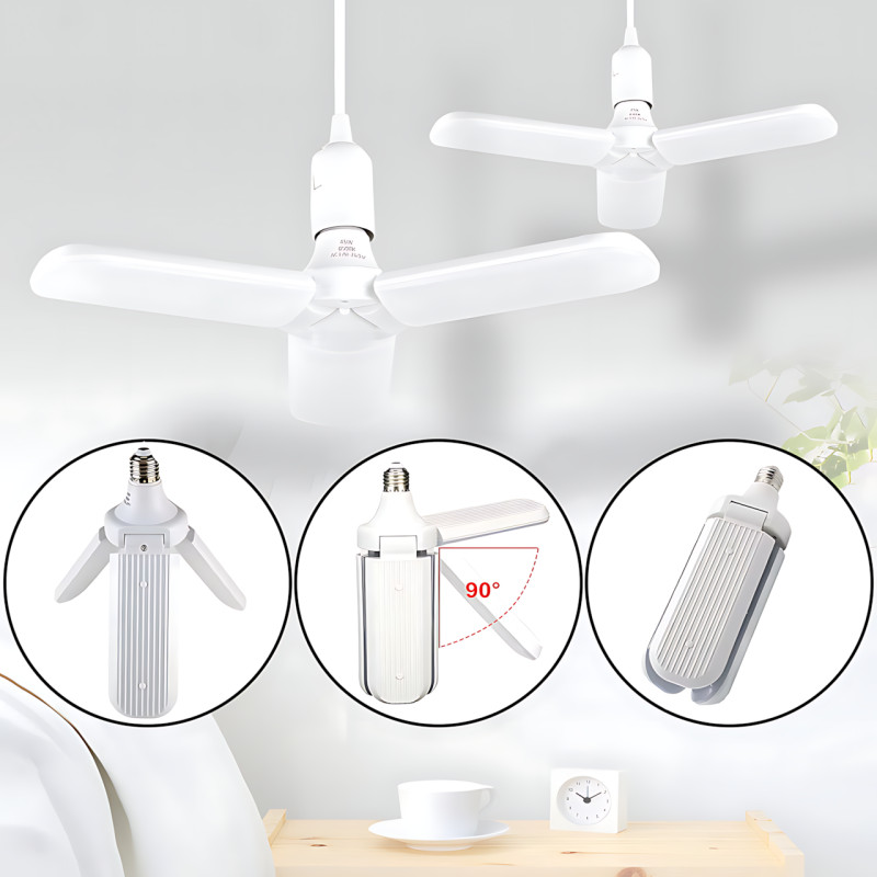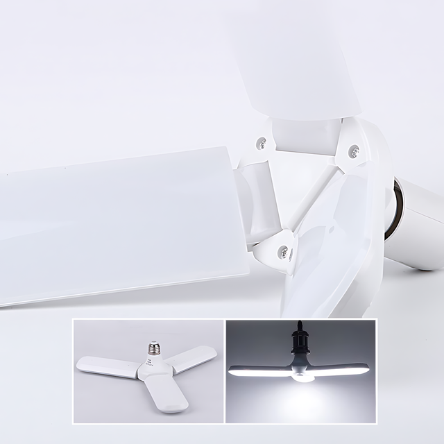 Светодиодная складная лампочка, E27 Fan blade bulb, 3 лопасти, 60 ВТ, белое теплое свечение, работа от 220В