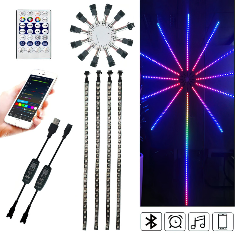 Светильник фейерверк SF-9 с пультом ДУ на 28 кнопок, 12 светодиодных лент, и управлением через приложение