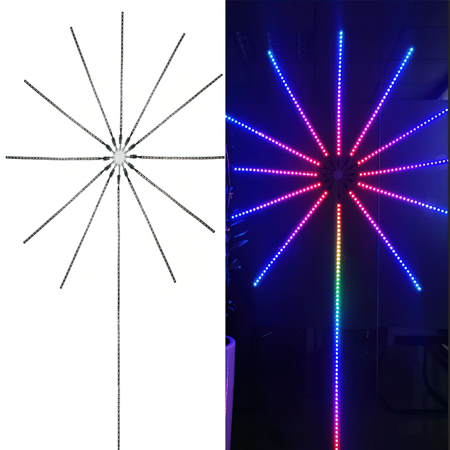 - Эффектный дизайн: 12 светодиодных лент в стиле фейерверка обеспечивают потрясающий визуальный эффект, делая светильник не только источником света, но и стильным элементом декора;
