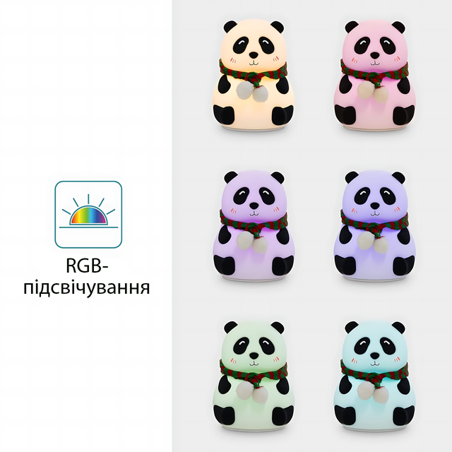 Силиконовый ночник "Волшебная Панда", аккумуляторный ночник, мягкий свет RGB, сенсорный датчик, 13 см