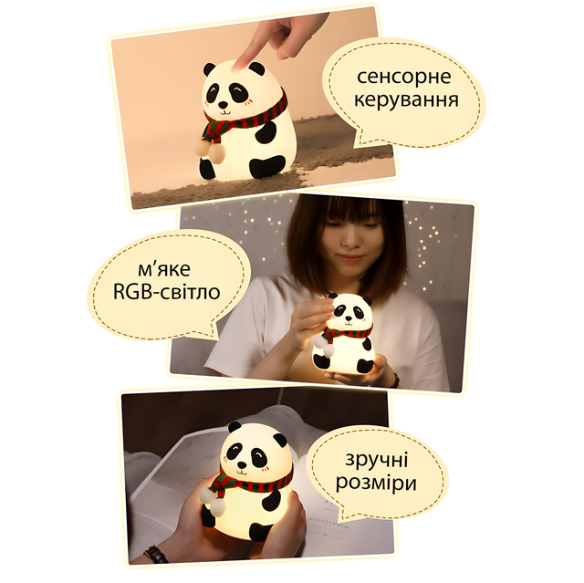 Силиконовый ночник "Панда" – это сказочный спутник, который наполняет детскую комнату мягким, волшебным светом. Его нежное сияние и тактильный комфорт создают атмосферу уюта, превращая вечерние ритуалы в настоящую сказку. Этот милый медвежонок не боится воды, не нагревается и готов к любым детским экспериментам – его можно мять, тискать и даже кусать! Управлять ночником невероятно просто: легкий хлопок – и "Панда" оживает, меняя режимы свечения. Безопасный, компактный и стильный, он станет верным другом для малыша и стильным украшением дома. "Панда" приглашает в мир чудесных снов и волшебных историй!