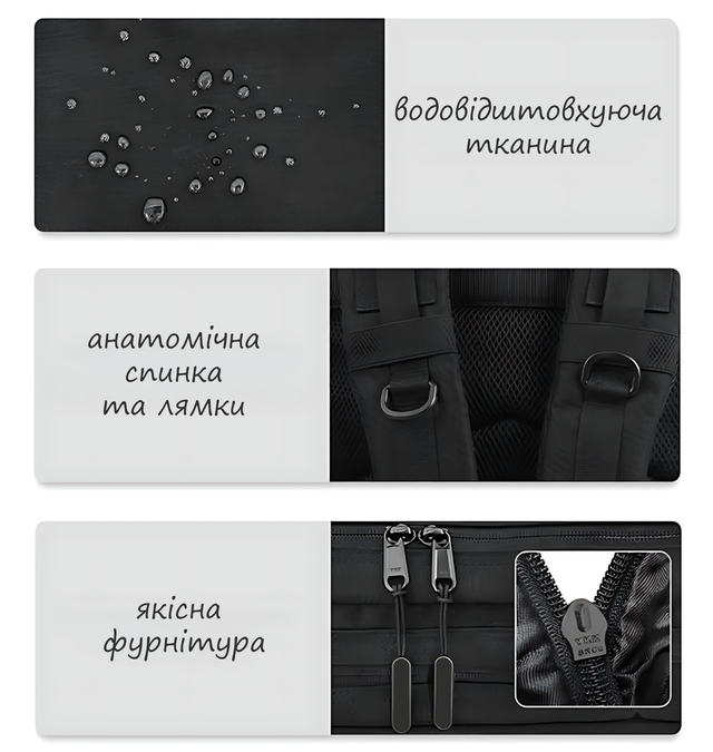 - 8 отсеков на молнии: Обеспечивают удобную организацию вещей и быстрый доступ к нужным предметам;