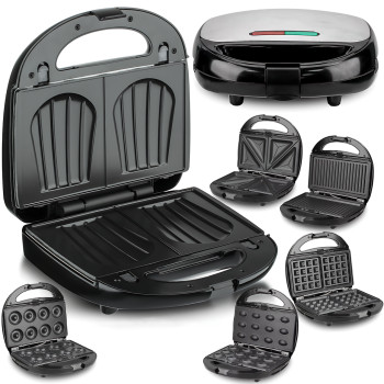 Сендвичница Domotec MS-7706 6 в 1, 1000 Вт, антипригарные пластины, 6 сменных насадок: гриль, вафли,..