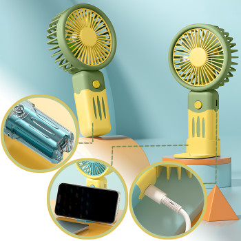Портативный мини-вентилятор JX-991 2 Вт с аккумулятором 500 мАч, 3 скорости, держатель для телефона,..