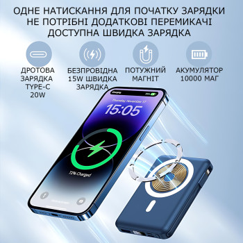 Power Bank Yiisonger KT-D011 10000 mAh, 22.5 Вт, магнитный, беспроводная зарядка 15 Вт, встроенные к..