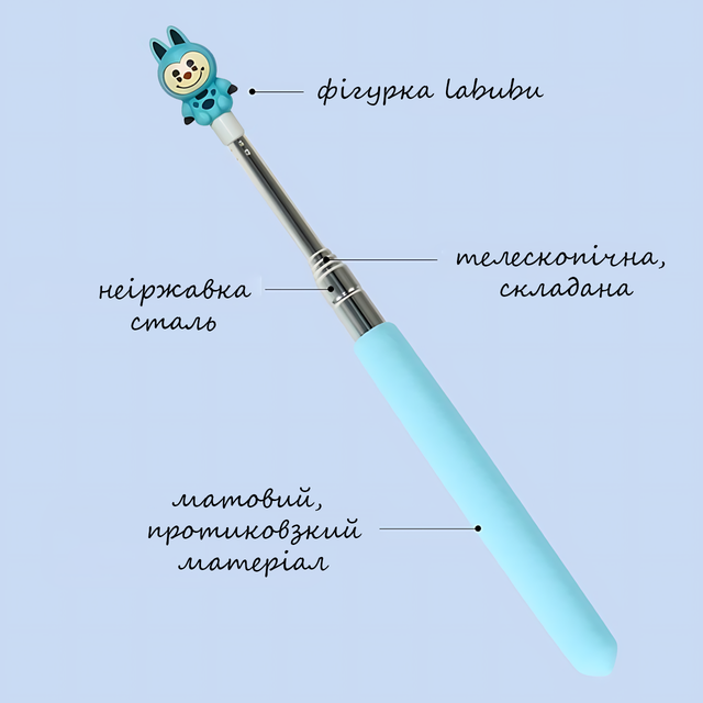 Телескопическая указка Лабубу Пикми Labubu, раскладная палочка 21,5–68 см, металлическая, для обучения и игр