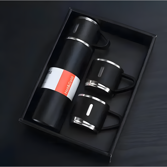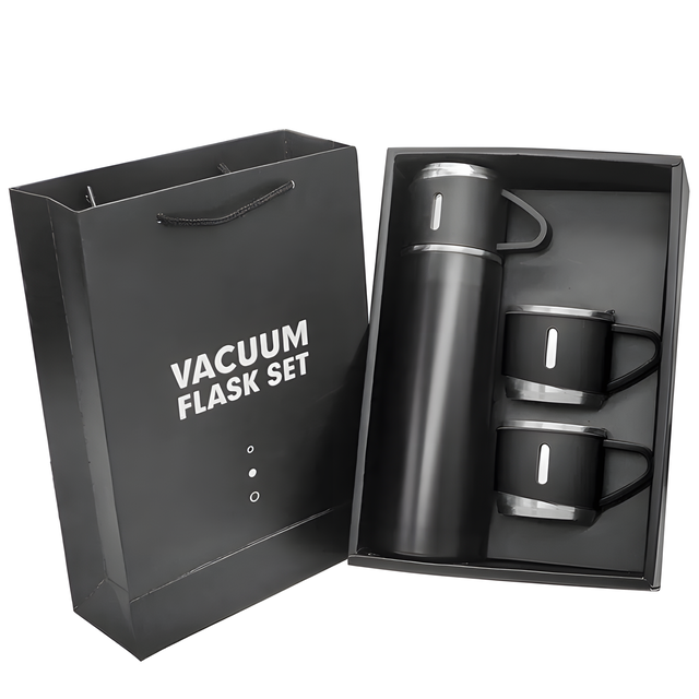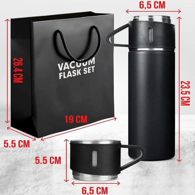 - Термос с вакуумной изоляцией Подарочный набор с 2 чашкам (500 мл )Vacuum flask set;