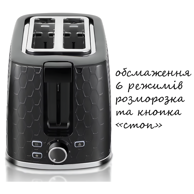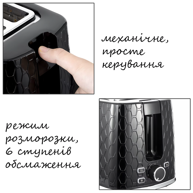 Тостер Domotec MS-508, 930 Вт, 6 степеней обжаривания, функции подогрева и разморозки, 2 отделения, стильный дизайн «соты»