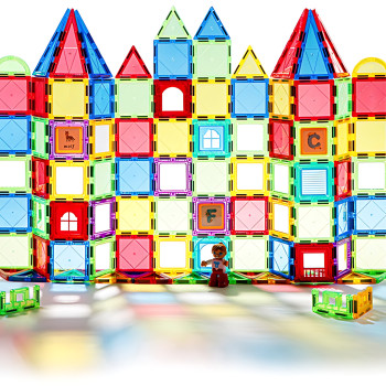 Магнитный детский конструктор D018, 110 деталей: 3D-фигуры, окна, наклейки, ABS-пластик, обучающий р..