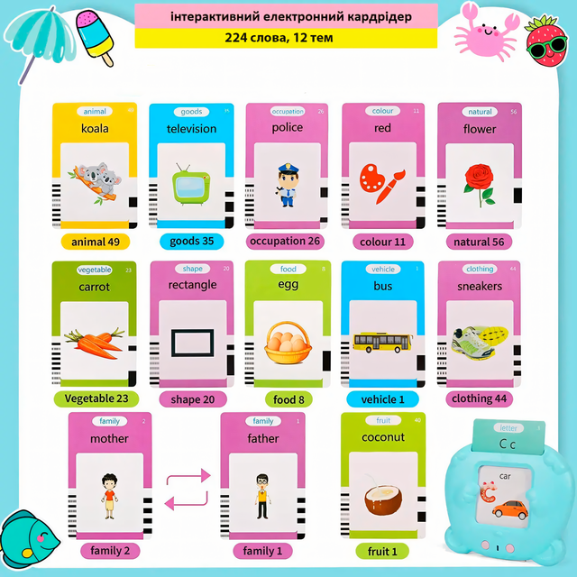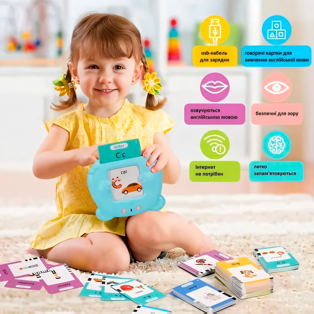 - Удобство использования: детям легко самостоятельно пользоваться образовательными карточками, просто вставляя их в устройство для считывания;