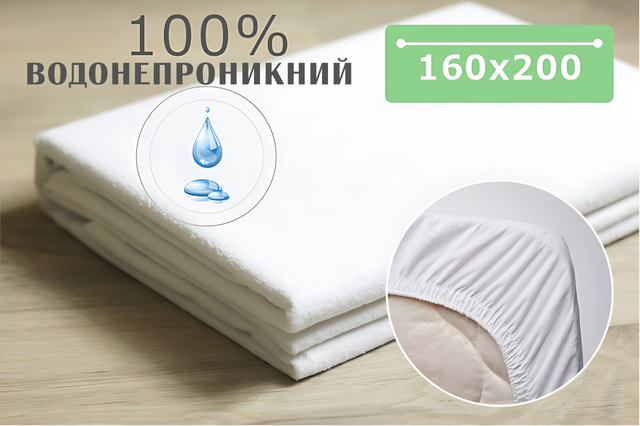 Трикотажный водонепроницаемый наматрасник 160 х 200 см, Евро непромокаемый наматрасник на резинке