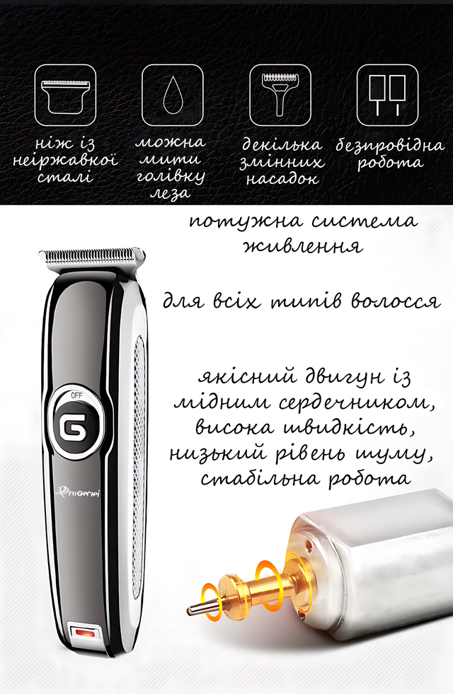 - ✂ Лезвия из нержавеющей стали — точная стрижка без раздражения