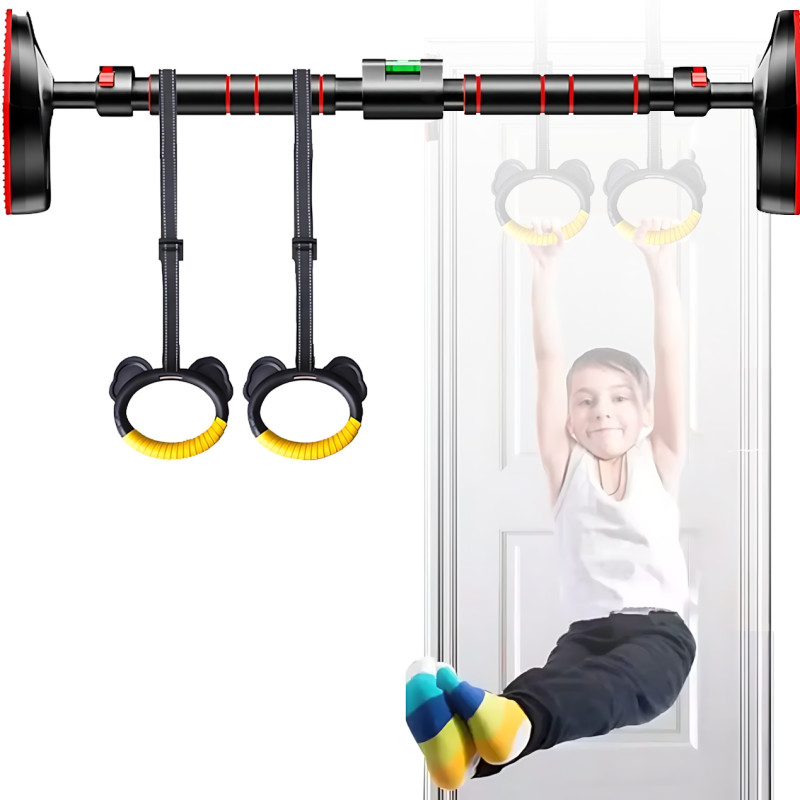 Турник без винтов 130–157 см TYRNIK-1 с кольцами, до 300 кг, регулируемый в дверной проём