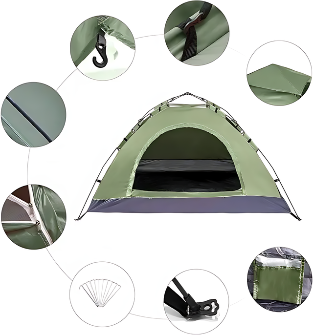 Туристическая палатка MA539 для кемпинга, 4-местная, механическая, 200×200×135 см, защита от дождя и насекомых, цвет хаки