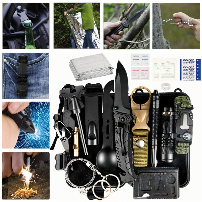 Необходимо иметь снаряжение для выживания. Аварийный набор для выживания 33 в 1 включает предметы для выживания и предметы медицинского назначения, которые лучше всего соответствуют вашим потребностям. Мы модернизировали нож для выживания, добавили кремень, браслет выживания, универсальную ложку-вилку, медицинскую ленту, спиртовую подушечку, бинты из ПБТ и многое другое.