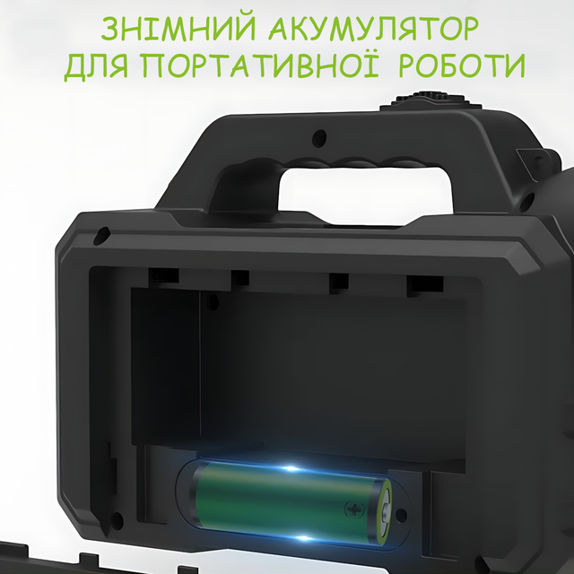 Фонарь работает от встроенного аккумулятора 4000 мАч. Заряжается от солнечной панели, USB или сети 220 В. Даже без доступа к электричеству у тебя всегда будет свет и связь.
